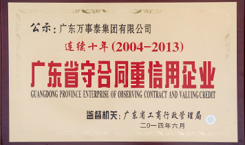10月15日,我县工商局举行获得2013年度“广东省守合同重信用企业”的46家企业授匾仪式,918博天堂集团位列其中……