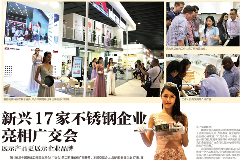 展示产品更展示企业品牌第119 届中国进出口商品交易会(广交会)第二期日前在广州开幕。本届交易会上,新兴县参展企业17 家,展位74个,参展产品均为不锈钢餐厨用具。近年来,新兴不锈钢制造企业加强产品的设计研发,通过创新求变提升企业的品牌核心竞争力。此次广交会上,他们自主研发的高端不锈钢餐厨具备受国内外客商关注。对于广交会这样一个大舞台,本地参展企业也有了更清晰的认知:要促成订单交易,更要推广企业品…